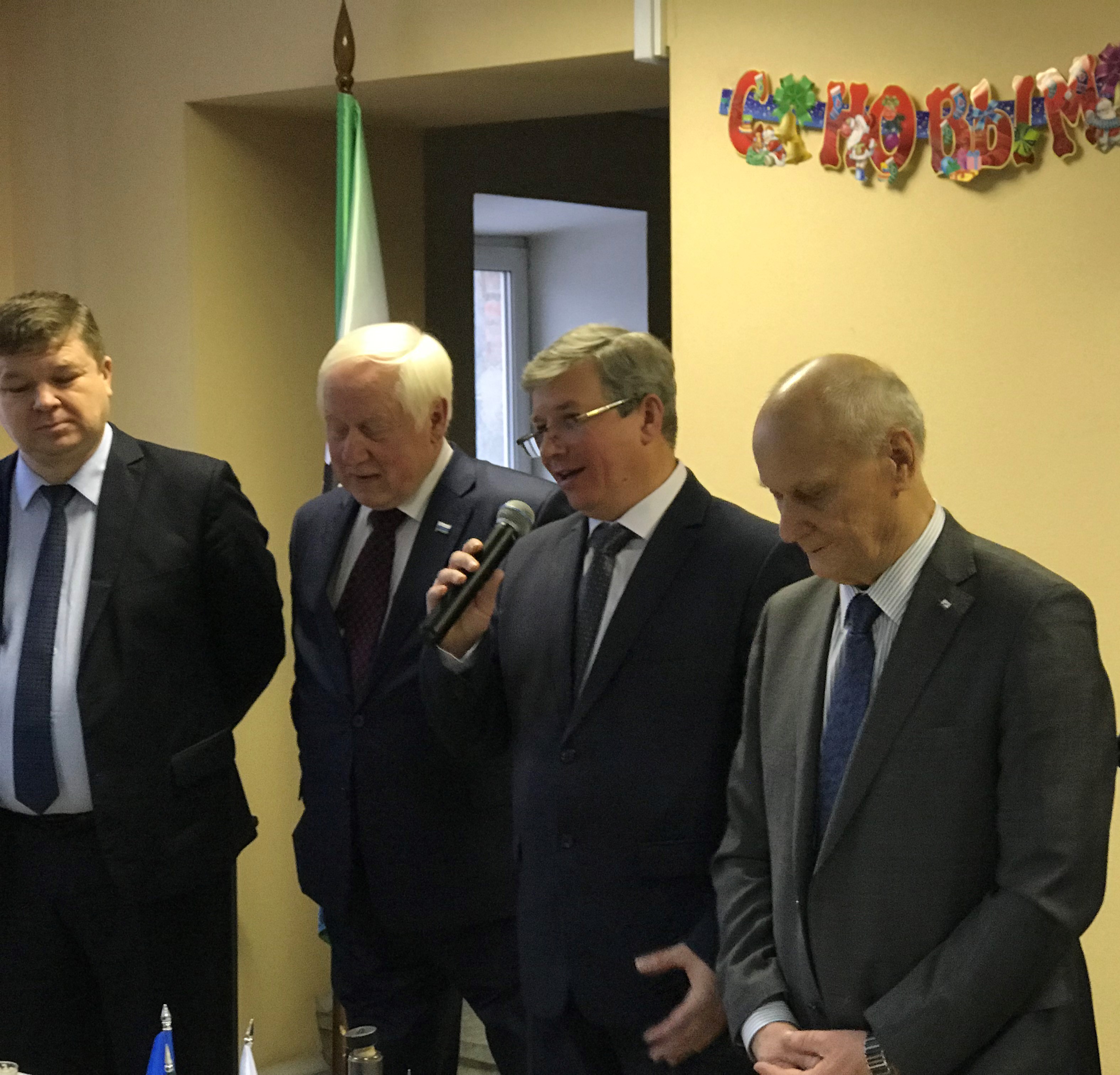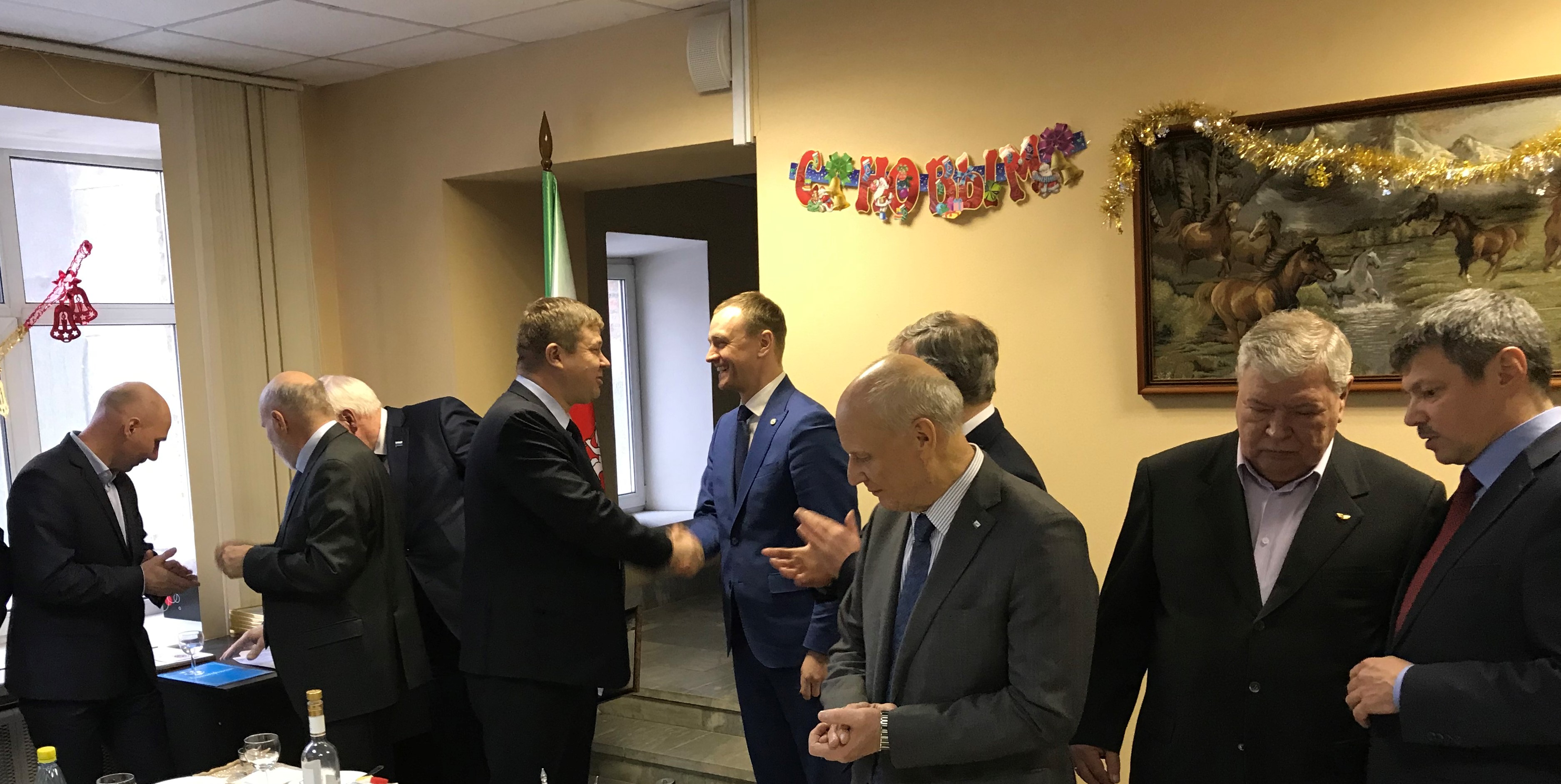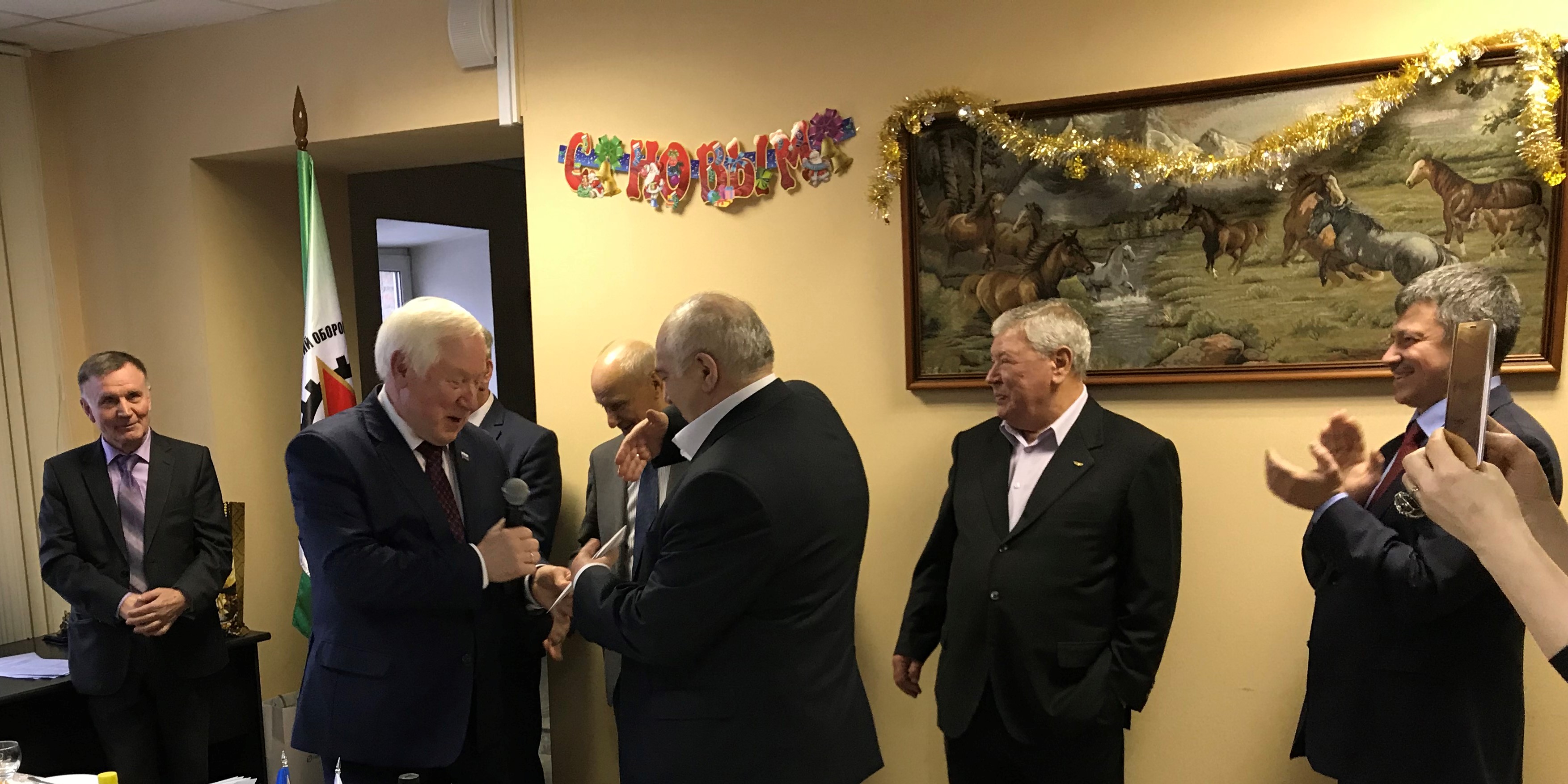 В дружеской встрече, состоявшейся в фойе конференц-зала УралНИТИ, приняли участие член Комитета Государственной Думы Российской Федерации по экономической политике, промышленности, инновационному развитию и предпринимательству Ветлужский Андрей Леонидович, заместитель Министра промышленности и науки Свердловской области Зеленкин Игорь Федорович, президент Уральской торгово-промышленной палаты Беседин Андрей Адольфович, председатель Комитета промышленной политики и развития предпринимательства администрации Екатеринбурга Матафонов Михаил Энгельсович, генеральный директор – главный конструктор УПКБ «Деталь», первый вице-Президент Союза Пономарев Леонид Иванович, генеральный директор-генеральный конструктор ОКБ «Новатор» Абрахманов Фарид Хабибуллович, генеральный директор АО «Каменск-Уральский литейный завод» Барабанов Анатолий Владимирович, генеральный директор ФКП «Нижнетагильский институт испытания металлов» Смирнов Николай Павлович, руководителей других предприятий оборонно-промышленного, машиностроительного, ядерно-оружейного и атомно-энергетического комплекса, системообразующих банков, организаций малого бизнеса в научно-производственной сфере, входящих в Союз оборонных предприятий Свердловской области, а также ветераны ОПК региона.