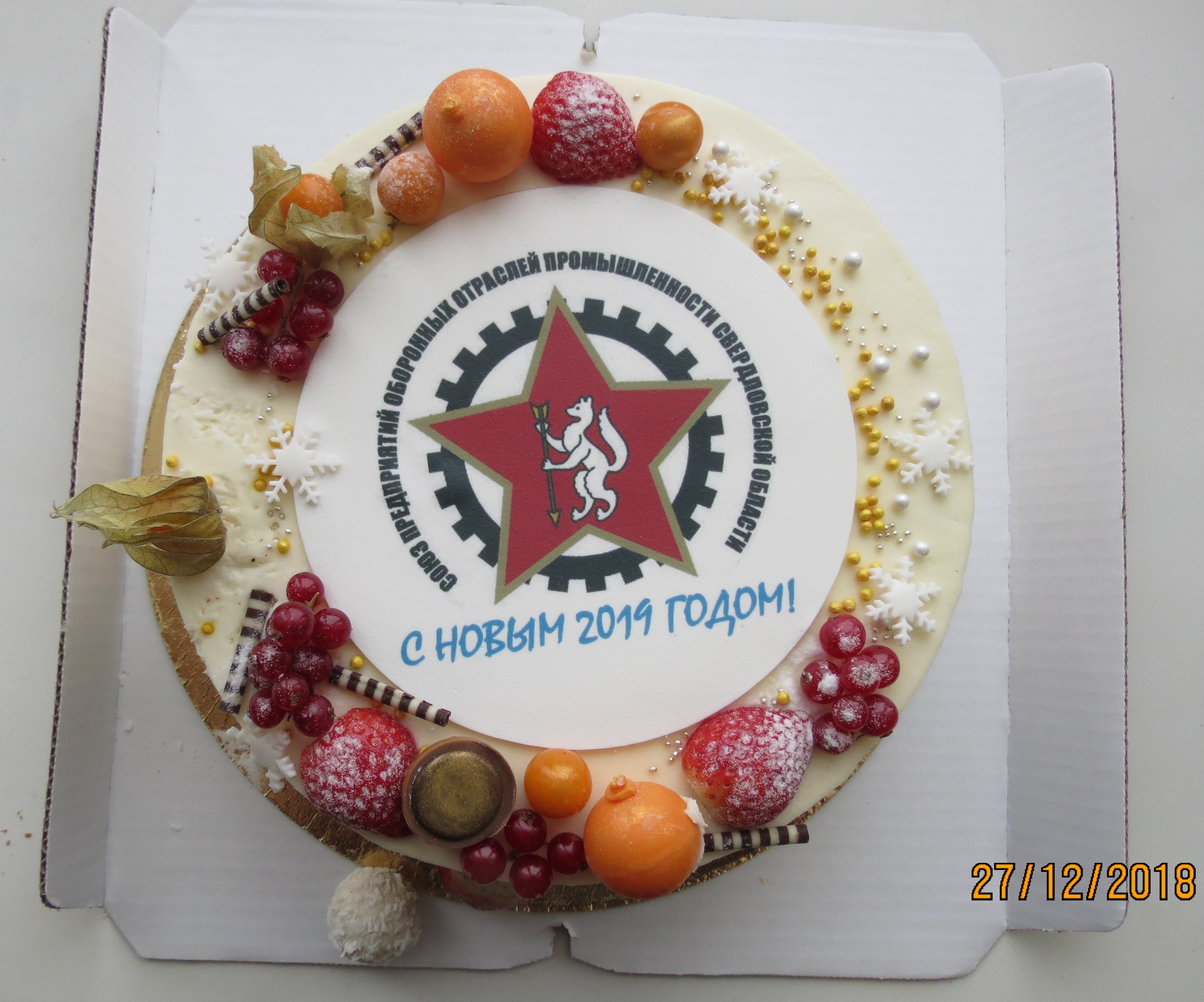 Участникам встречи понравился торт с изображением эмблемы Союза предприятий оборонных отраслей промышленности Свердловской области, который подарил Уральский банк Сбербанка России.