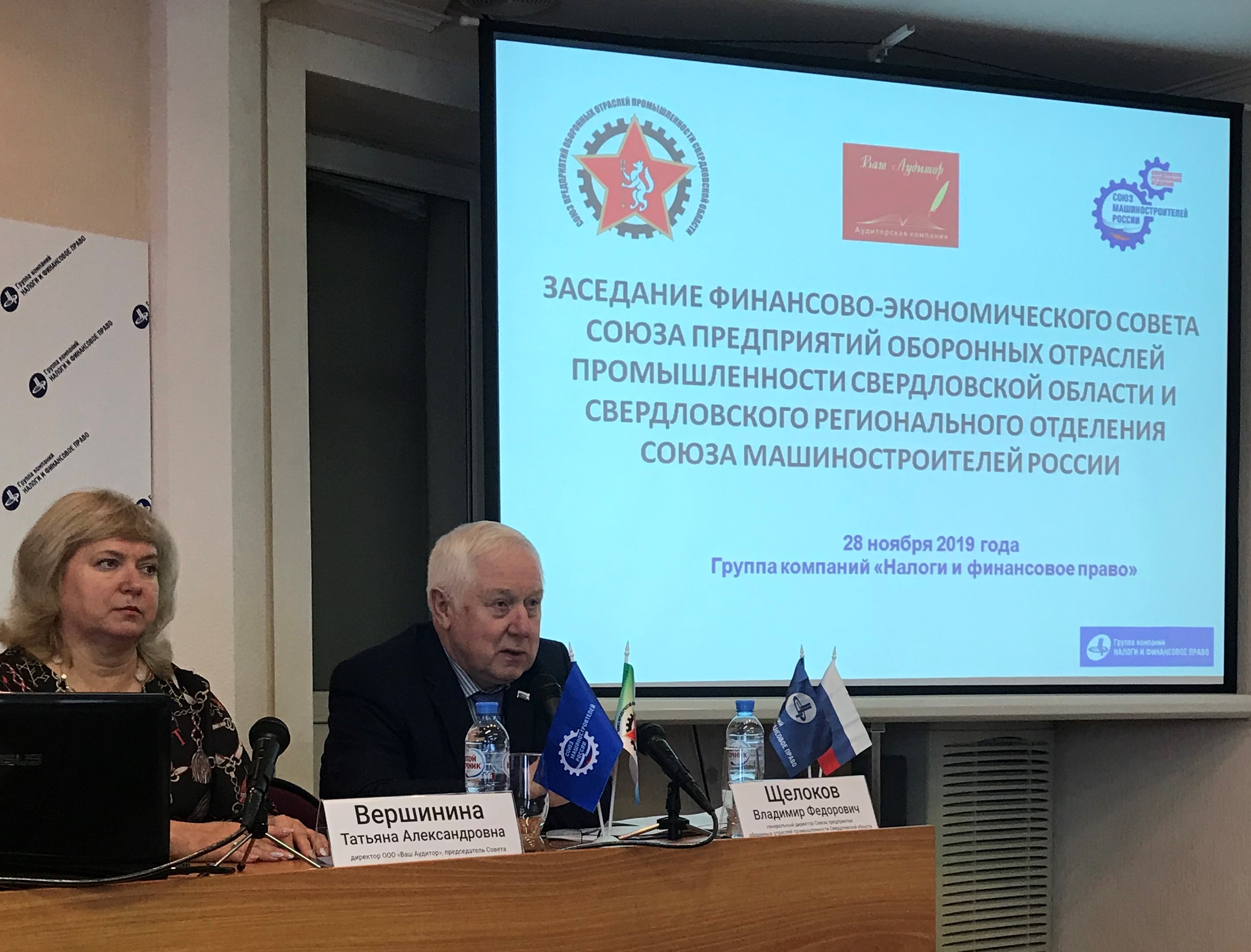 28 ноября 2019г. на площадке Группы компаний «Налоги и финансовое право» состоялось заседание Финансово-экономического Совета Союза предприятий оборонных отраслей промышленности Свердловской области и Свердловского регионального отделения Общероссийской общественной организации «Союз машиностроителей России».