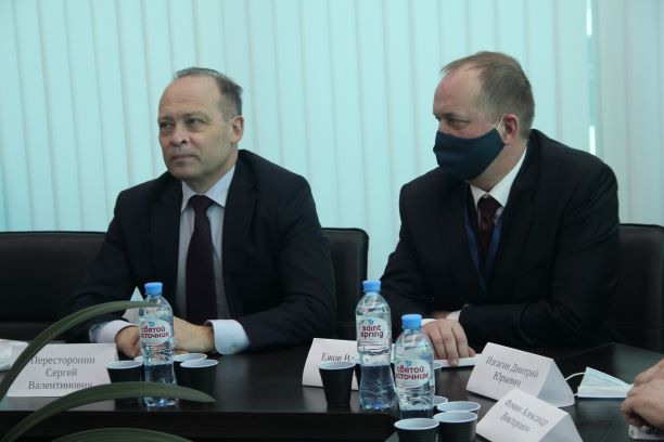 В поселке Прохладный Свердловской области 24.03.2021г. на производственной площадке ООО «Гидронт» прошла рабочая встреча с презентацией конструкторско-производственных возможностей Гидронта.Во встрече приняли участие: Министр Пересторонин С.В., генеральный директор Союза оборонных предприятий Щелоков В.Ф., заместитель главы Белоярского городского округа Клименко Е.Н., а также представители более 20 ведущих промышленных организаций Свердловской и соседних областей.