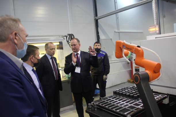 Во время экскурсии по производственной площадке был продемонстрирован новый коллаборативный робот, установленный для работы на станке с ЧПУ Mazak.