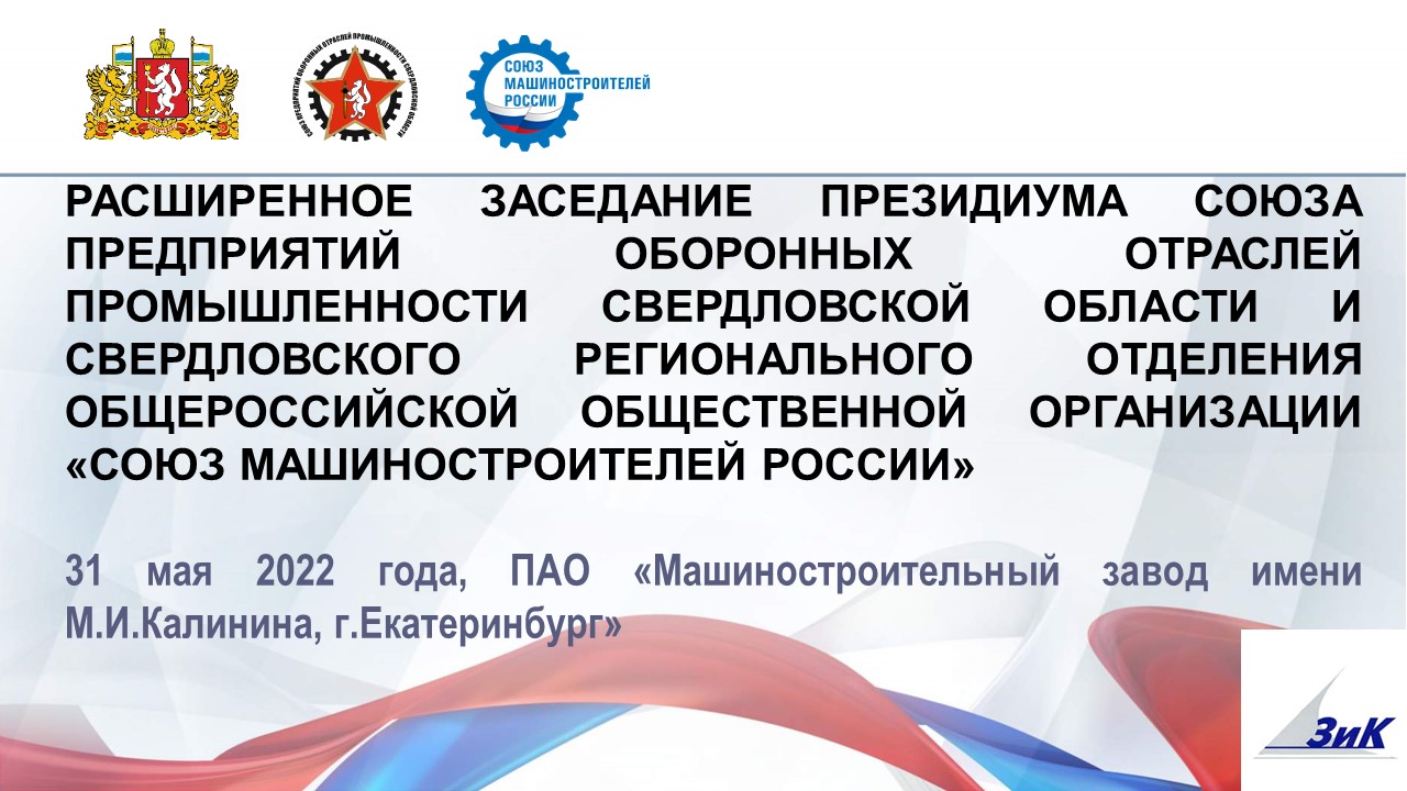 31 мая 2022 года на ПАО «Машиностроительный завод им.М.И.Калинина» (ПАО «МЗИК») состоялось расширенное заседание Президиума Союза предприятий оборонных отраслей промышленности Свердловской области и Свердловского регионального отделения Общероссийской общественной организации «Союз машиностроителей России».