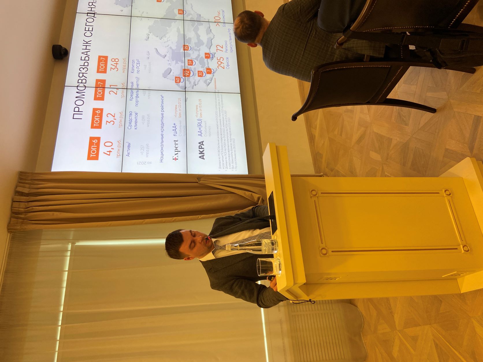 Начальник управления по работе с предприятиями оборонно-промышленного комплекса Уральского филиала ПАО "Промсвязьбанк" Константинов Алексей Николаевич, который остановился на вопросах финансирования государственного оборонного заказа, на предложениях по финансированию банком проектов диверсификации в соответствии с Постановлением Правительства РФ №26 от 21.01.2020г., других финансовых продуктах банка для предприятий ОПК.