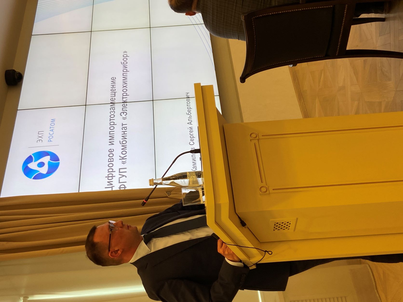 Генеральный директор Комбината «Электрохимприбор» Жамилов Сергей Альбертович в своем докладе доложил о цифровом импортозамещении на ФГУП «Комбинат «Электрохимприбор. Было отмечено, что данной проблематикой Росатом занимается системно и сегодня на комбинате 90% прикладного программного обеспечения (ПО) собственной разработки, 10% - корпоративное ПО ГК «Росатом».