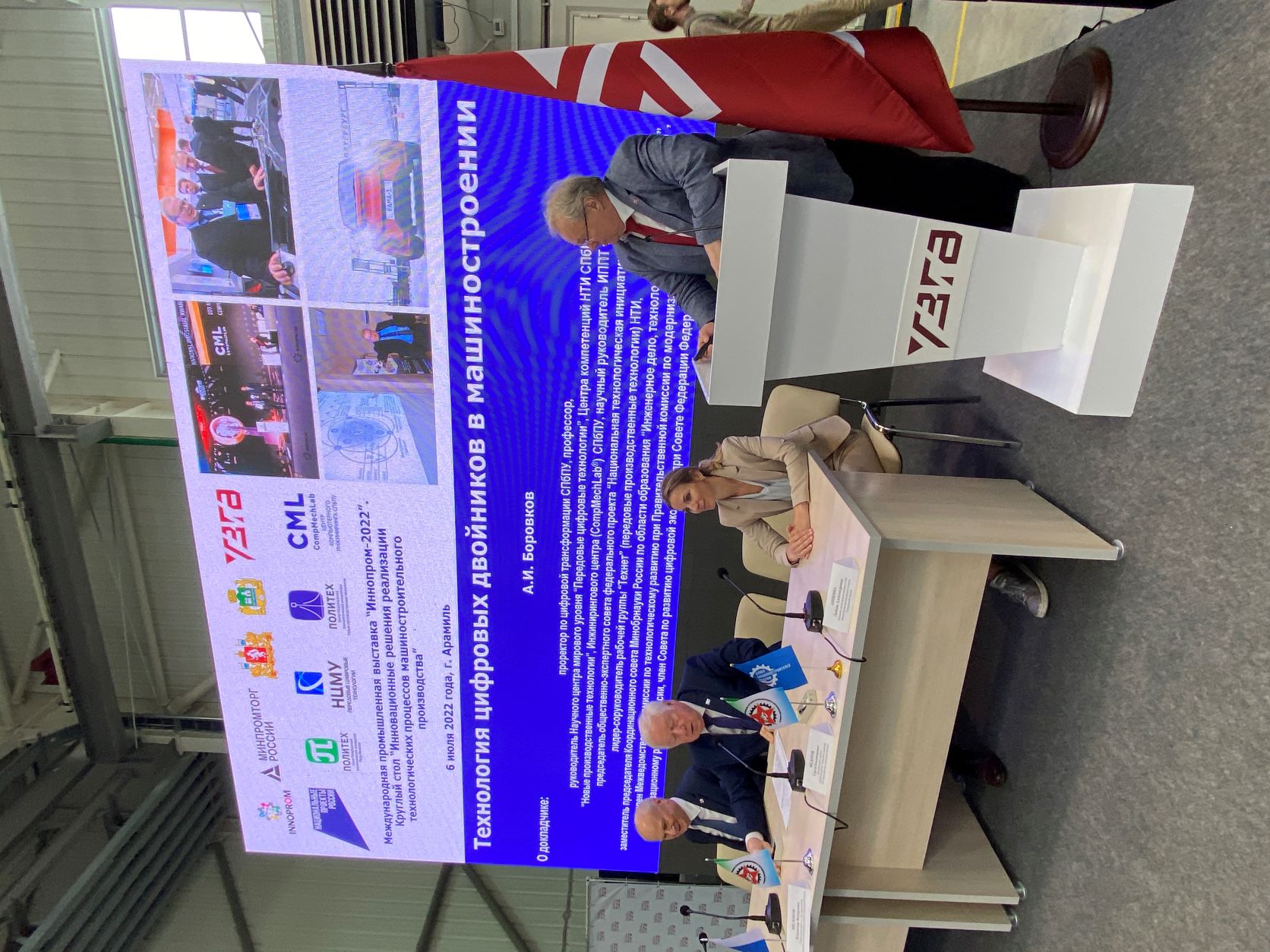 Сотрудничество с Санкт-Петербургским политехом6 июля в рамках выставки «Иннопром-2022» на Уральском заводе гражданской авиации прошел круглый стол на тему «Использование цифровых двойников технологических процессов при внедрении современных технологий в производственный цикл»