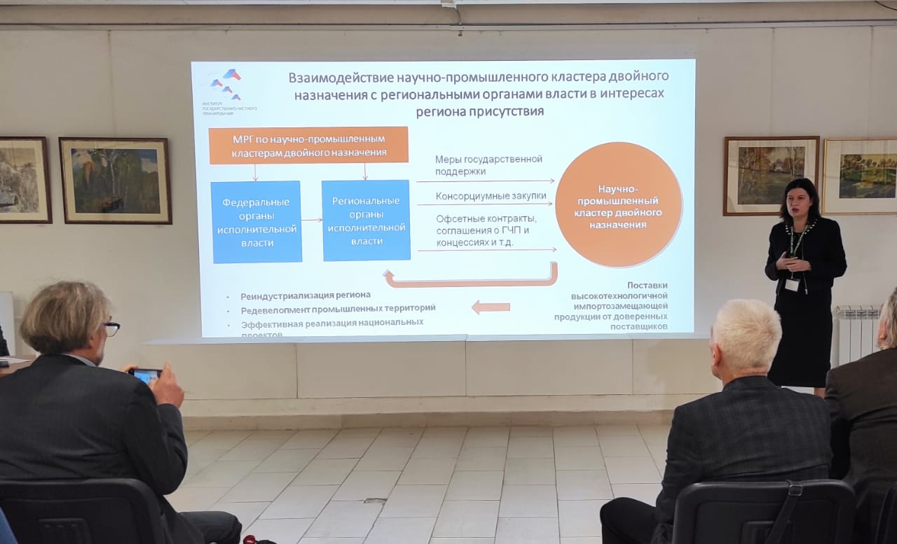 Об опыте диверсификации предприятий ОПК на конкретных примерах речь шла в докладе руководителя Межведомственной рабочей группы по научно-промышленному кластеру двойного назначения Коллегии Военно-промышленной комиссии Российской Федерации, генерального директора Института государственно-частного планирования Антипиной Елены Александровны.