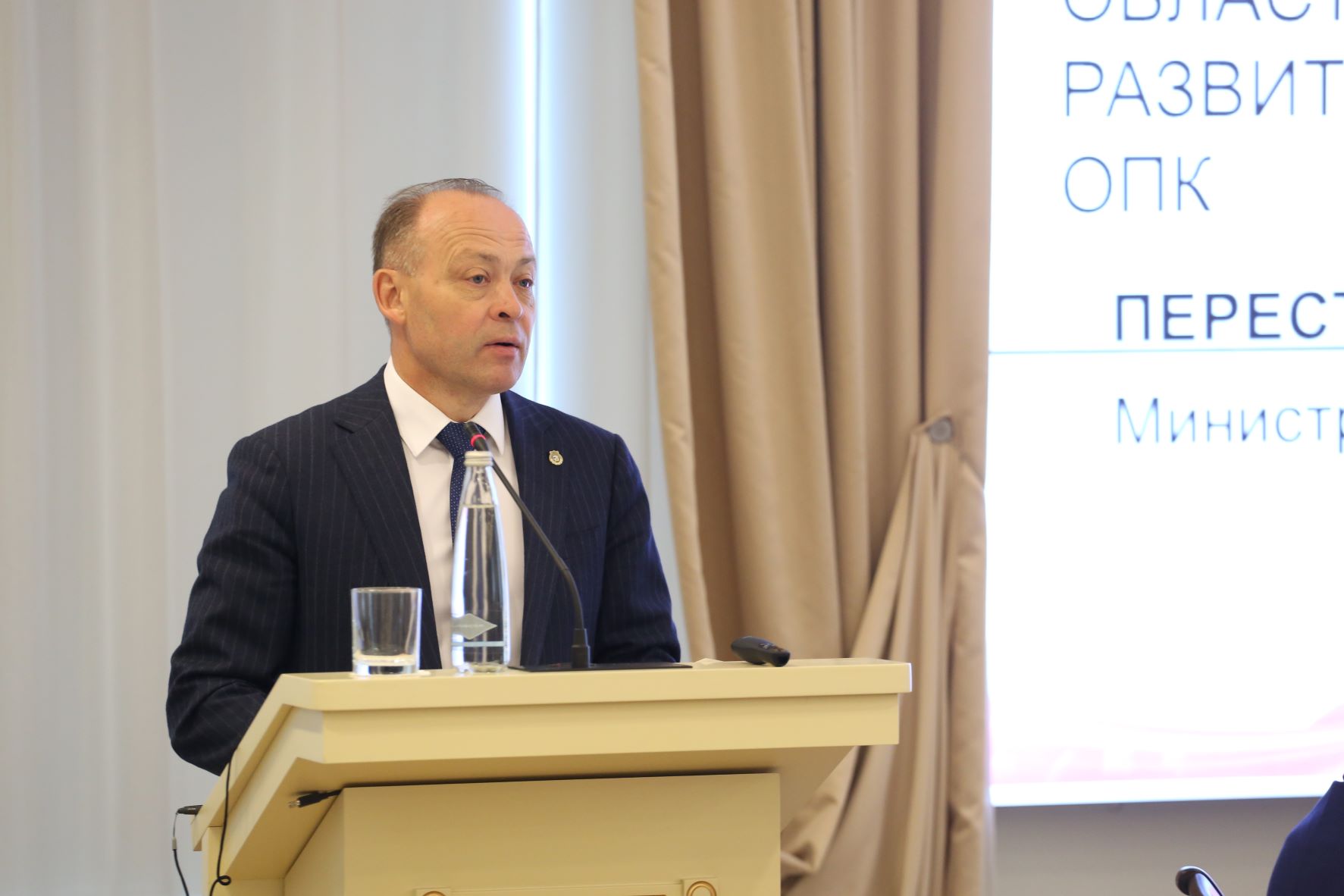 С докладом «О некоторых важных задачах Министерства промышленности и науки Свердловской области на краткосрочную перспективу по развитию кадрового потенциала предприятий ОПК» перед участниками выступил Министр промышленности и науки Свердловской области Пересторонин Сергей Валентинович. В своем выступлении он остановился на вопросах проведения конкурса «Лучший молодой работник организаций оборонно-промышленного комплекса Российской Федерации, расположенных на территории Свердловской области», заключения предприятиями соглашения с организациями среднего профессионального образования по подготовке кадров, рассказал о программе строительства арендного жилья для специалистов предприятий.