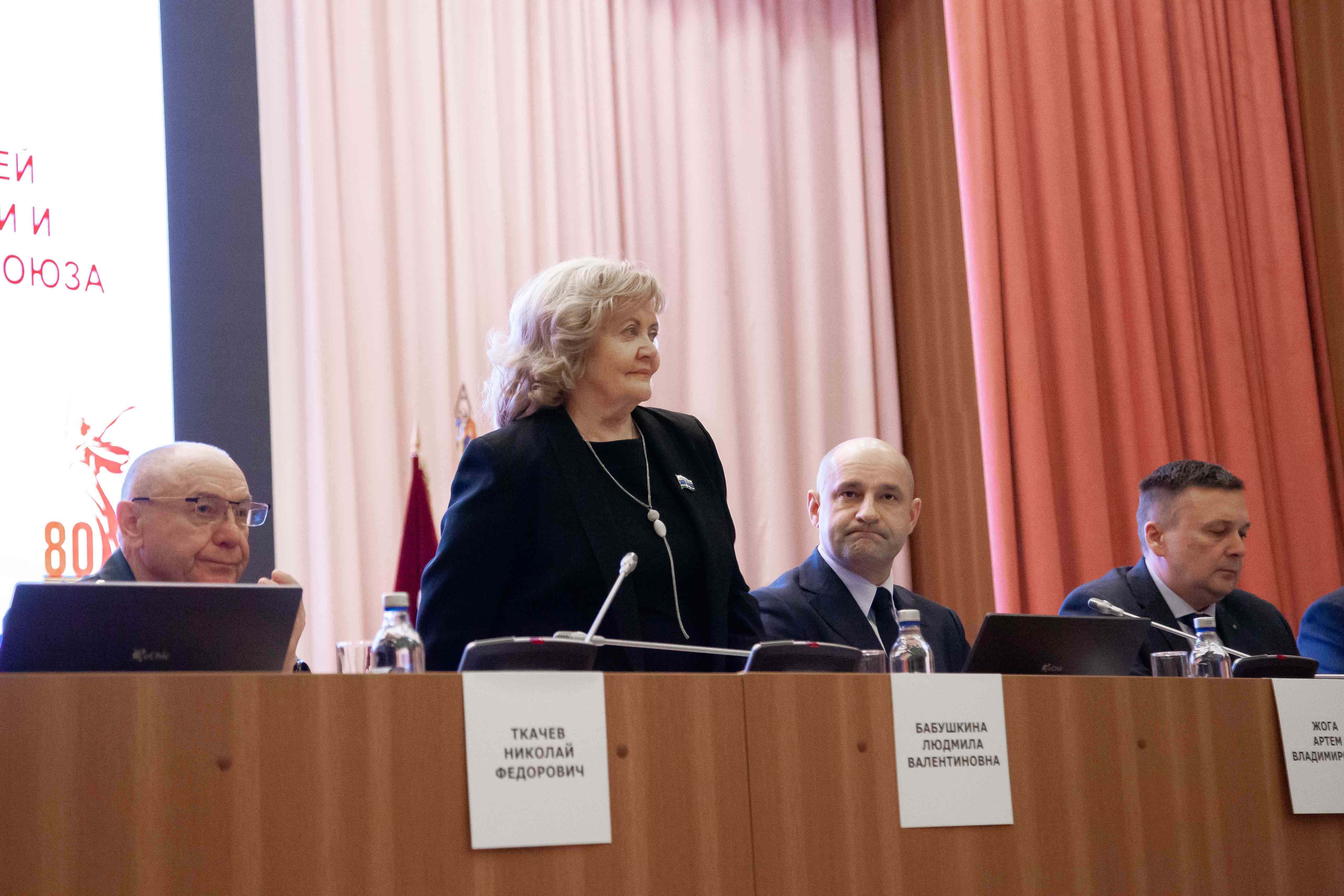 Перед открытием собрания состоялась церемония вноса знамён предприятий, полученных на постоянное хранение как внёсших достойный вклад в Победу в Великой отечественной войне.