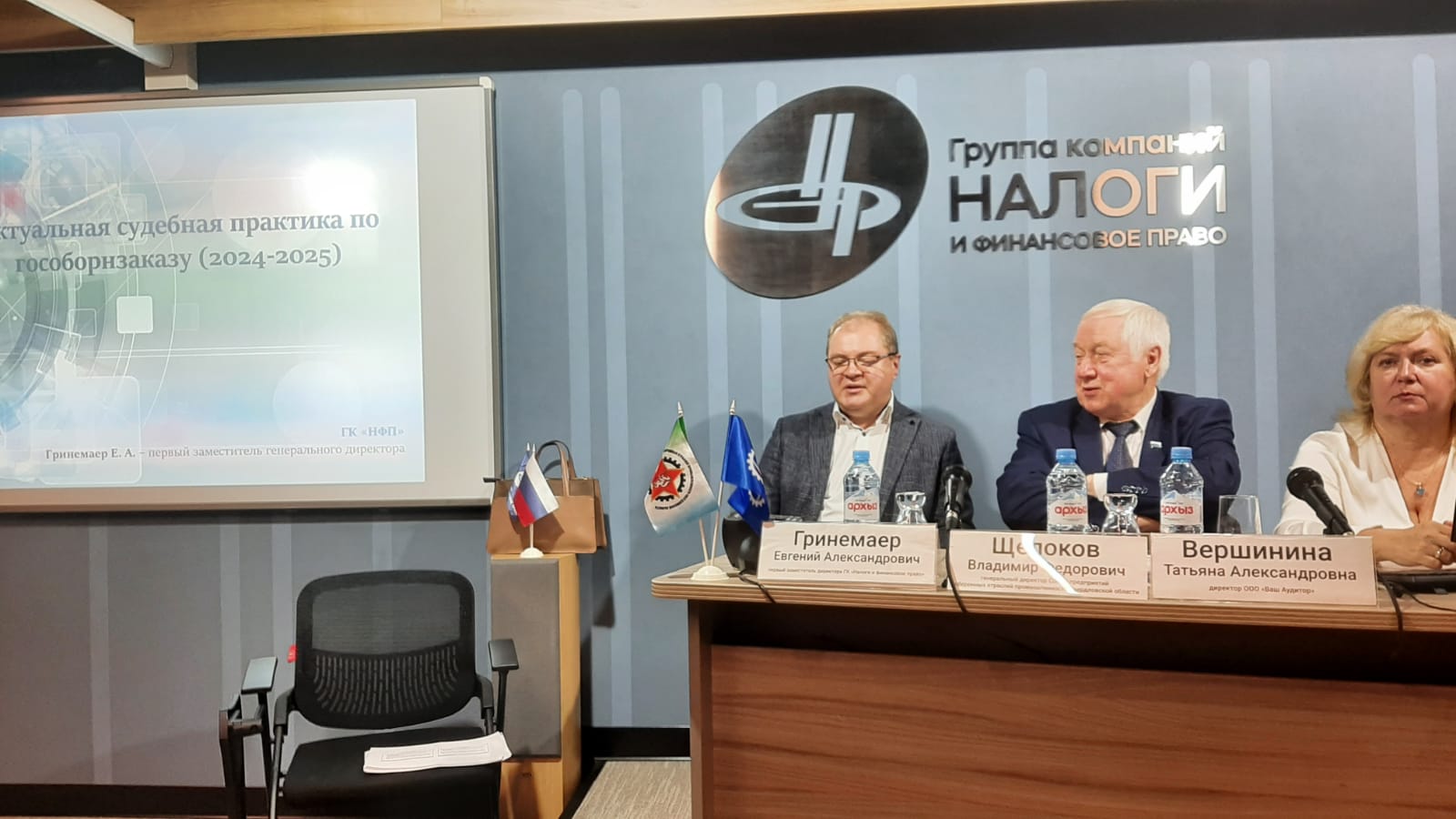 Первый заместитель генерального директора Группы компаний «Налоги и финансовое право» Евгений Александрович Гринемаер сделал доклад на тему «Актуальные вопросы правоприменительной практики по исполнению предприятиями ОПК государственного оборонного заказа (на примерах конкретных судебных дел 2024-2025 гг.)».