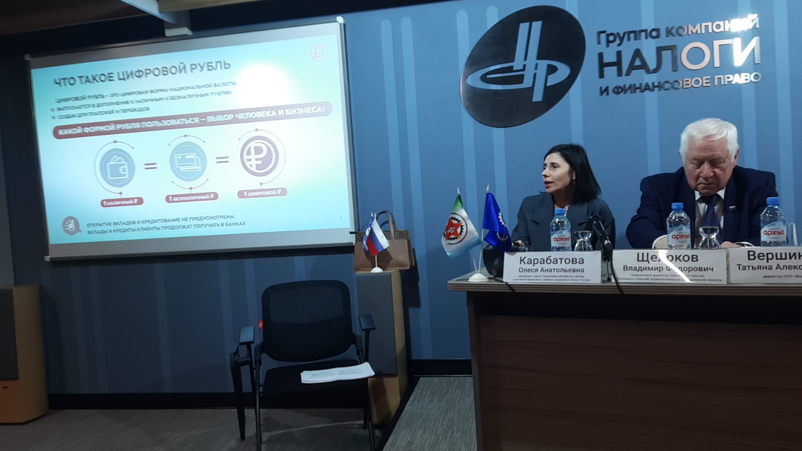 С большим интересом участники заседания выслушали выступление начальника отдела Управления платёжных систем и расчётов Уральского главного управления Банка России Карабатовой Олеси Анатольевны. Тема ее выступления была посвящена цифровому рублю – цифровой форме национальной валюты.