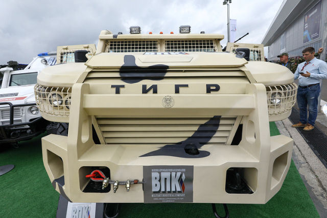 Еще один из самых ярких экспонатов выставки — модернизированный с учетом опыта боев в Сирии бронеавтомобиль "Тигр".