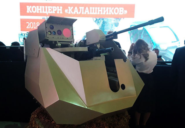 Концепт управляемого прямоходящего комплекса представил концерн "Калашников". Перспективная цель применения антропоморфного комплекса — решение инженерных задач. Машина состоит из кабины, где будет сидеть водитель, установленной на двуногое шасси. Робот имеет две дистанционно управляемых руки-манипулятора. Высота машины достигает четырех метров. Сообщалось, что на следующей "Армии" будет представлен действующий образец машины, который уже будет ходить.