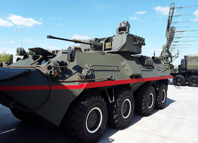 Также на открытой площадке ВПК была еще одна необычная новинка — бронетранспортер БТР-87, оснащенный новым боевым модулем — 30-мм пушкой и сверхзвуковыми противотанковыми ракетами "Атака". Главным отличием его от предшественника — БТР-82А — является переработанная компоновка: моторный отсек смещен вперед, справа от механика-водителя, а высадка десанта осуществляется через дверь в корме машины. Новая компоновка приближена к БТР следующего поколения на платформе "Бумеранг".