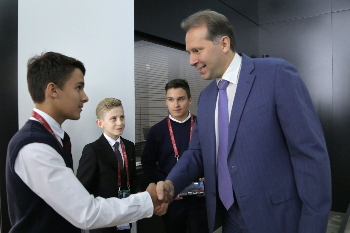 Генеральный директор УВЗ пожал руки юным изобретателям и вручил каждому модель танка Т-14 «Армата».