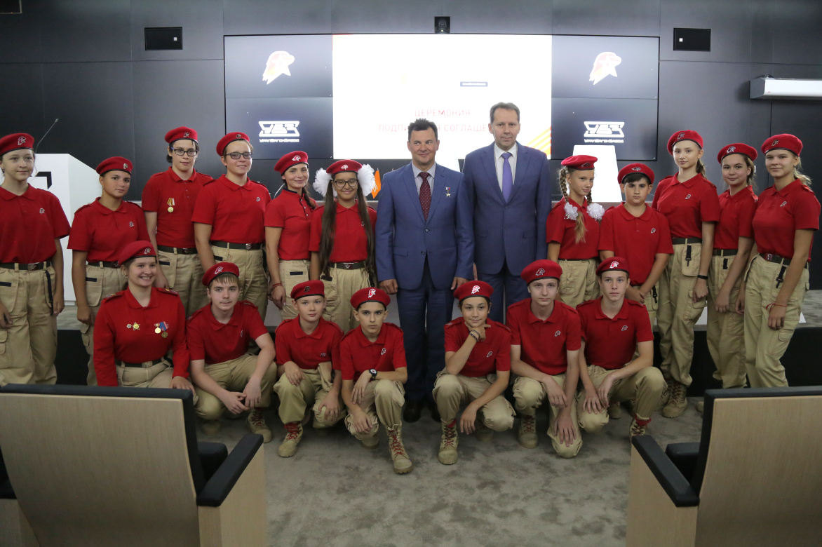 Тема поддержки юных дарований получила свое продолжение в четвертый день Международного военно-технического форума «Армия-2018». Научно-производственная корпорация «Уралвагонзавод» подписала соглашение о взаимодействии и сотрудничестве с Всероссийским детско-юношеским военно-патриотическим общественным движением «Юнармия». Подписи под соглашением поставили генеральный директор УВЗ Александр Потапов и начальник Главного штаба «Юнармии» Роман Романенко. Конечно, Егор Трофимов вместе со своими коллегами присутствовал в зале наряду с представителями «Юнармии».