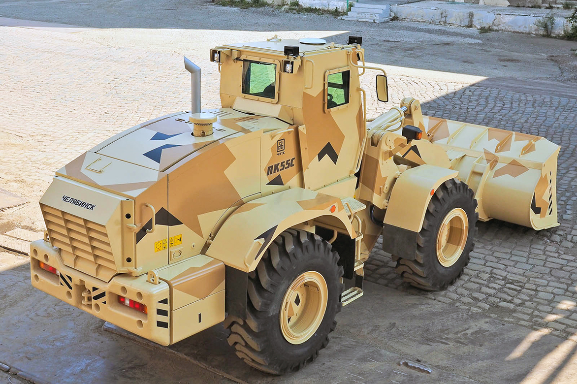 Помимо бульдозеров Уралвагонзавод представит новый фронтальный колесный погрузчик со спецзащитой ПК-55С. Так же, как и предыдущие машины, это изделие защищенно сверхпрочной броней, но при этом оно сохраняет высокую подвижность. Погрузчик может быстро сменить самое различное навесное оборудование, что обеспечивает многофункциональность, делая из погрузчика универсальную машину-трансформер, которая имеет в своем арсенале целый ряд рабочих орудий таких как ковш, кран-балку и вилы.