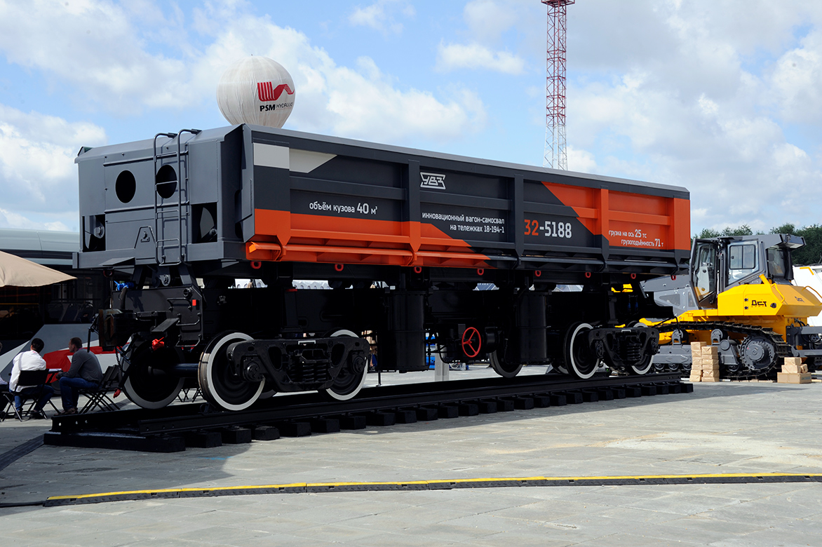 Вагон-самосвал 32-5188 - единственный на рынке «пространства 1520» инновационный вагон-самосвал и первый на тележке модели 18-194-1 с осевой нагрузкой 25 тс. Он предназначен для механизированной погрузки, разгрузки и перевозки сыпучих и кусковых грузов по магистральным железным дорогам, путям промышленных предприятий, строительств, открытых горных разработок. За счет установки на инновационную тележку повысилась его грузоподъемность - до 71 т. Также конкурентными преимуществами нового вагона-самосвала являются увеличенный объем кузова (40 м3) и межремонтный интервал, который составляет 6 лет или 500 тыс. км. Впервые это изделие было представлено на 9-й Международной промышленной выставке «ИННОПРОМ 2018» и получило высокую оценку специалистов.