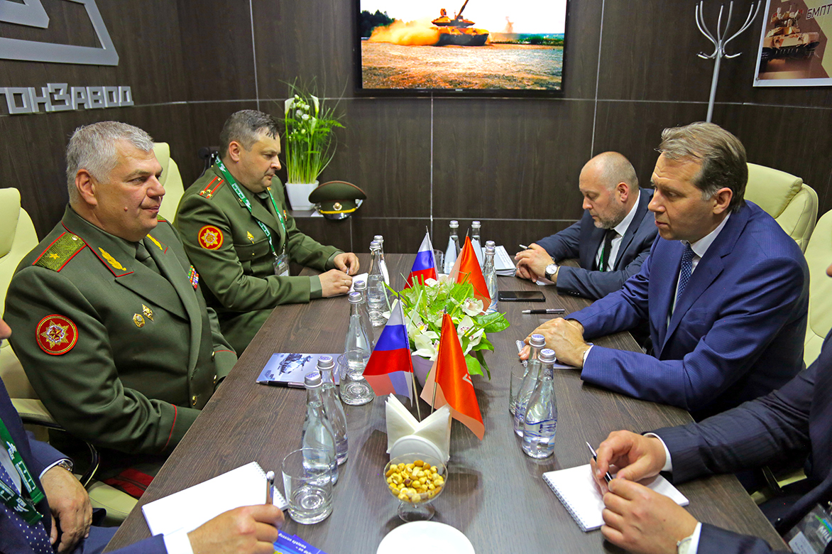 В ходе встречи генерального директора корпорации «Уралвагонзавод» Александра Потапова с заместителем министра обороны по вооружению - начальником вооружения Вооруженных Сил Республики Беларусь, генерал-майором Сергеем Симоненко обсуждались новые тенденции и разработки в области военной бронетехники, а также состояние и перспективы развития военно-технического сотрудничества между странами.