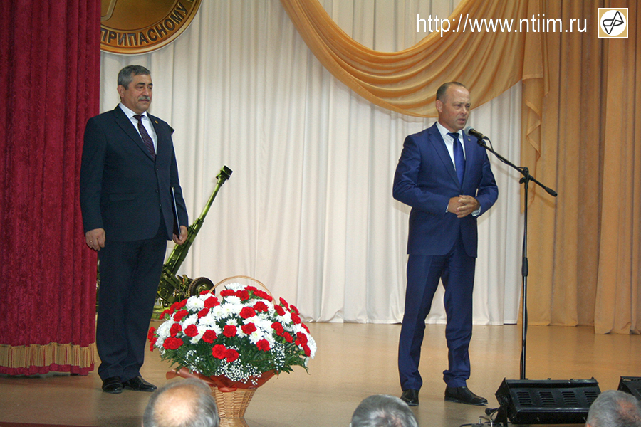 В торжественной обстановке на праздничную сцену было внесено знамя предприятия, прозвучал Гимн России. Затем поздравительную речь произнёс генеральный директор ФКП «НТИИМ» Николай Смирнов. Он отметил, что за 80 лет испытательной деятельности на Нижнетагильском полигоне прошли «обкатку» большинство разработанных и принятых на вооружение образцов боеприпасов к военной технике, рассказал собравшимся о главных результатах работы Института за последние годы, когда была проведена большая реконструкция многих подразделений предприятия, в том числе Лётно-испытательной базы и Специального конструкторского бюро. Руководитель Института кратко отметил положительные планово-экономические показатели – объём работ с 2009 года вырос более чем в 2 раза, подчеркнул точное выполнение ФКП «НТИИМ» поставленных задач по Гособоронзаказу.