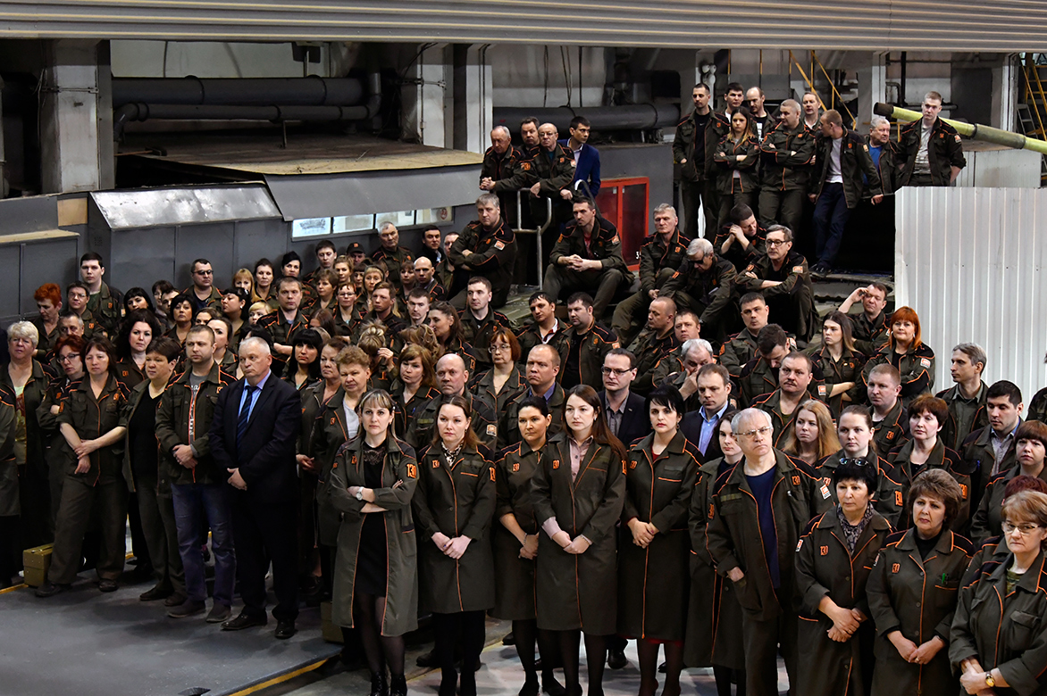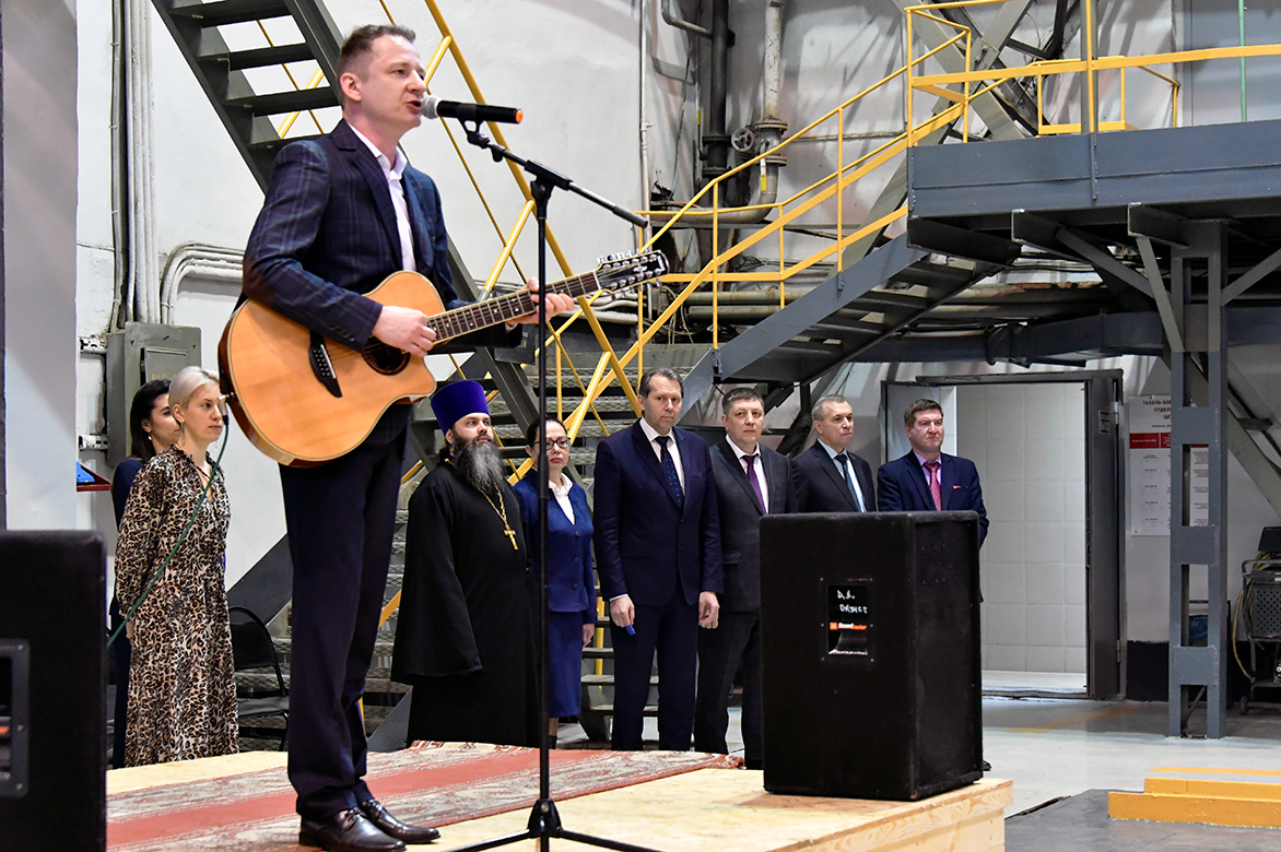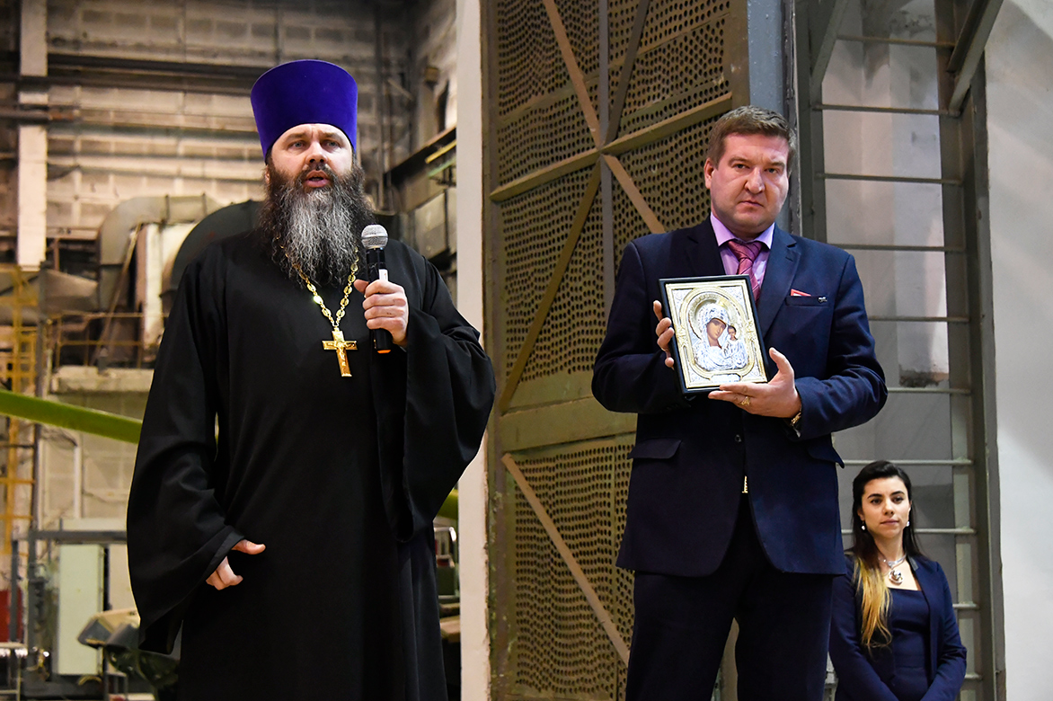 Начальник механосборочного производства Сергей Альбрехт поблагодарил заводчан за работу. Отец Василий, настоятель заводского храма Димитрия Донского, где на фресках увековечен ратный подвиг россиян, благословил присутствующих на труд.