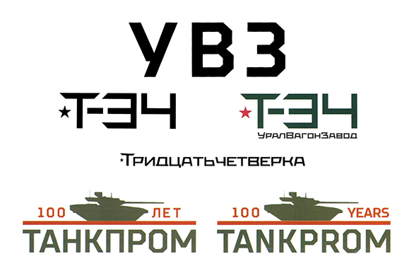 В канун 100-летия отечественного танкостроения Уралвагонзавод (в составе Концерна УВЗ входит в Госкорпорацию Ростех) зарегистрировал новые товарные знаки: «Танкпром (100 лет)», «Tankprom (100 years)», «Т-34 (Уралвагонзавод)», «Тридцатьчетверка», «Т-34» и «УВЗ».