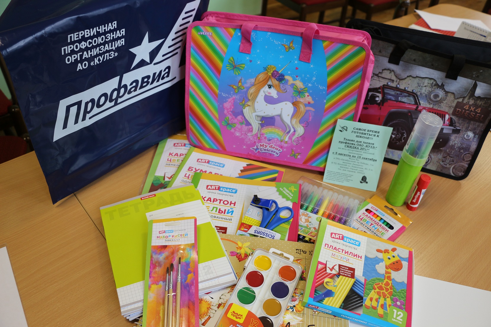 Кроме этого, родители школьников получили от профсоюза купон со 20-й скидкой на приобретение канцелярских принадлежностей в ряде торговых точек.