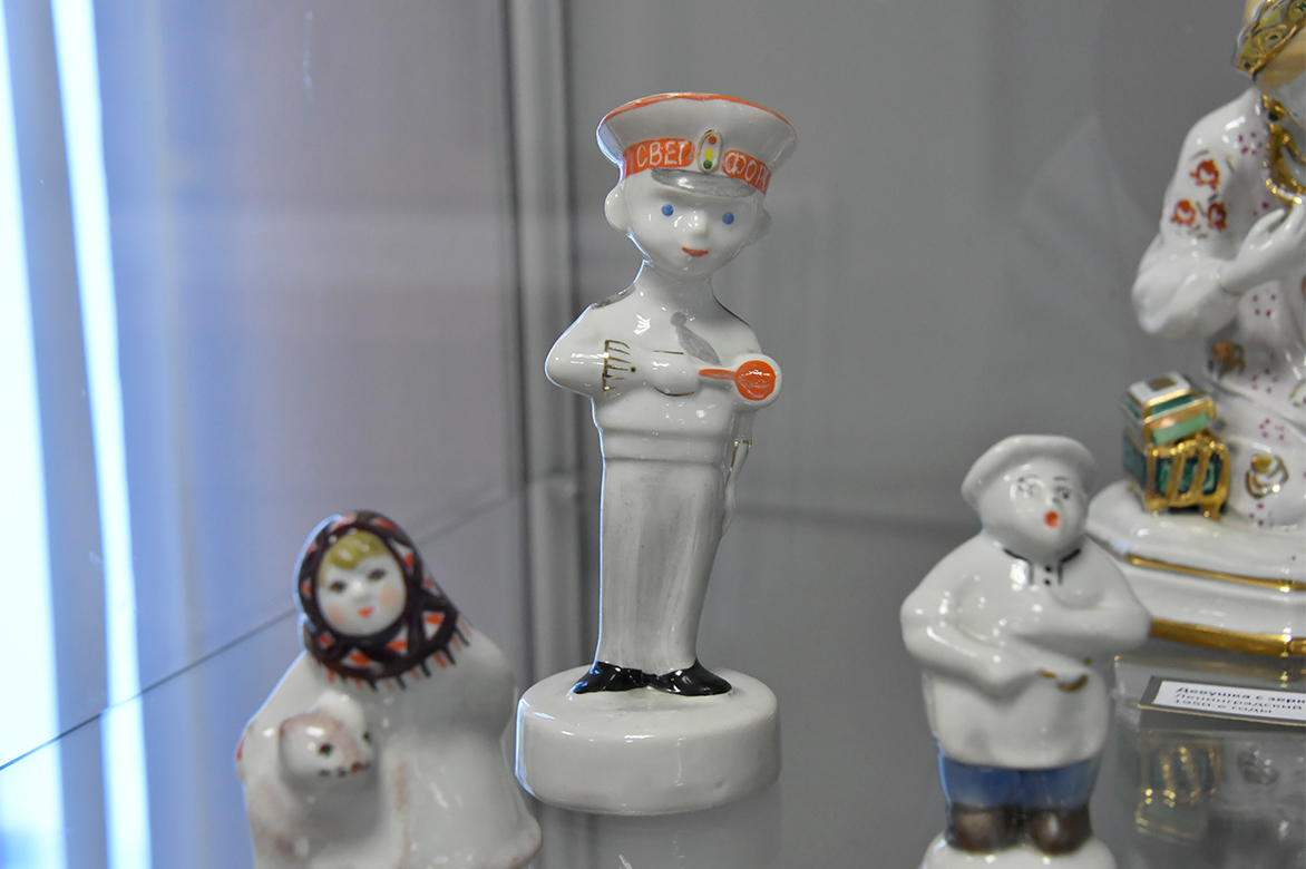 Вторая часть экспозиции посвящена коллекции керамики. В фонды музея экспонаты попали по-разному: подарки к юбилейным датам предприятия, сувенирная продукция УВЗ и раритетные экземпляры, которые приносили в музей работники завода.