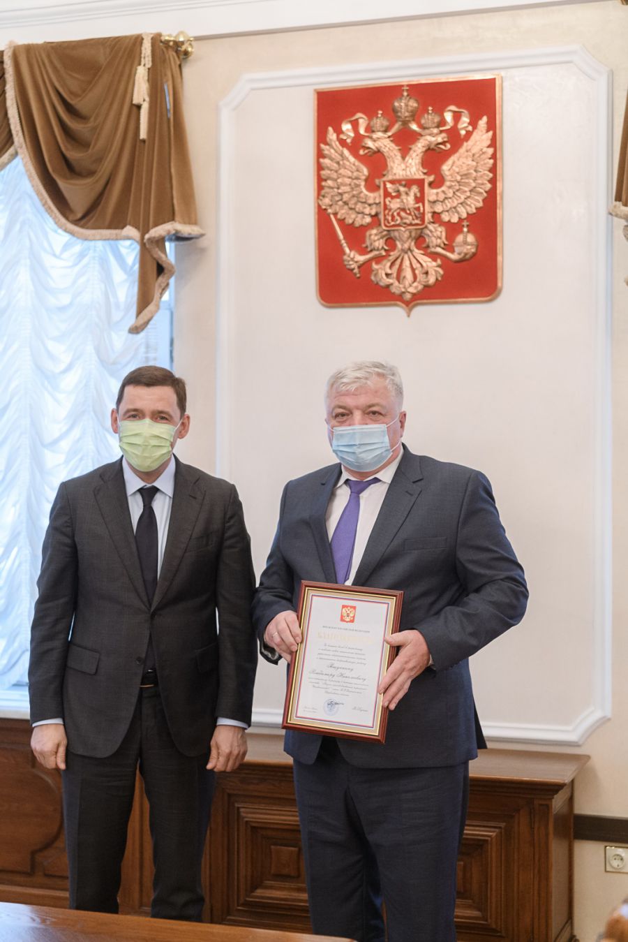 Губернатор также выполнил сегодня почётную миссию и вручил Владимиру Рощупкину благодарность Президента Российской Федерации за многолетнюю добросовестную работу.