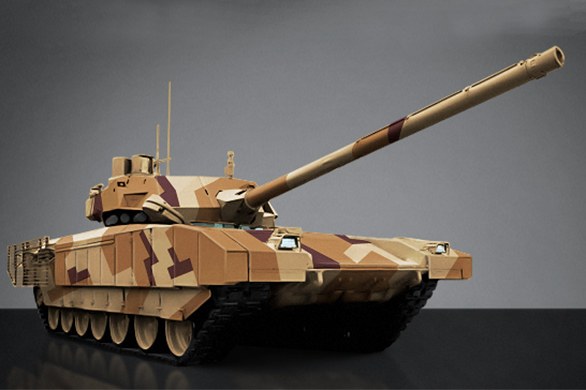 Огневую мощь Т-14 обеспечивает необитаемый дистанционно управляемый боевой модуль с пушкой повышенного могущества, спаренный с пулеметом и дистанционно управляемой пулеметной установкой. А повышенную маневренность и отличные динамические показатели - дизельный двигатель высокой мощности производства ООО «ЧТЗ-УРАЛТРАК» (в составе Концерна УВЗ входит в Госкорпорацию Ростех). Танк также оснащен газотурбинным агрегатом питания для обеспечения работы основных систем при неработающем основном двигателе.