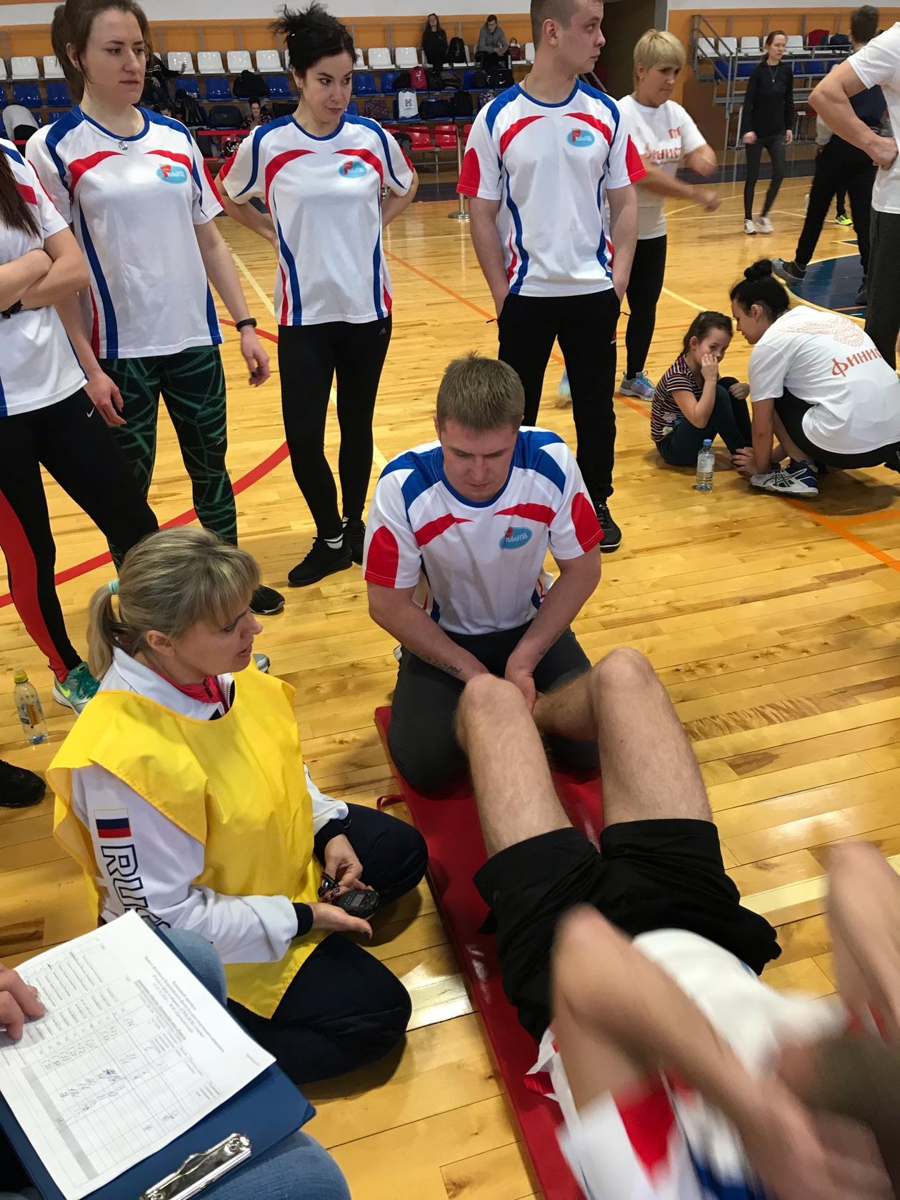 Команда «Планты» в составе 11 человек успешно прошла все испытания: подъем туловища из положения лежа на спине, подтягивание на высокой перекладине, сгибание и разгибание рук в упоре лежа на полу, прыжок в длину с места, наклон вперед из положения стоя.