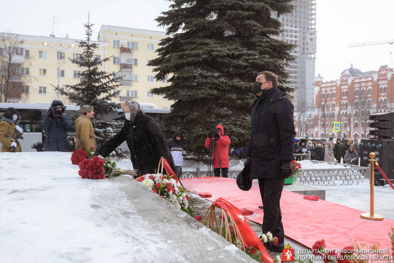 Губернатор Евгений Куйвашев 11 марта, в День народного подвига по формированию Уральского добровольческого танкового корпуса, вместе с сотнями жителей Свердловской области возложил цветы к памятнику воинам-добровольцам в Екатеринбурге.