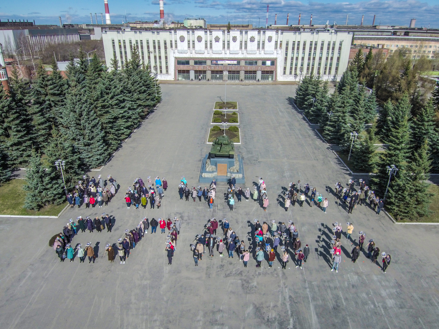 «Участники выстроились в слова «Вечная слава». Это словосочетание особенно символично, потому что пока существует Уралвагонзавод, память о людях, работавших здесь в годы войны, будет сохраняться и передаваться из поколения в поколение», - поделилась участница акции экскурсовод Выставочного комплекса Уралвагонзавода Светлана Неймышева.