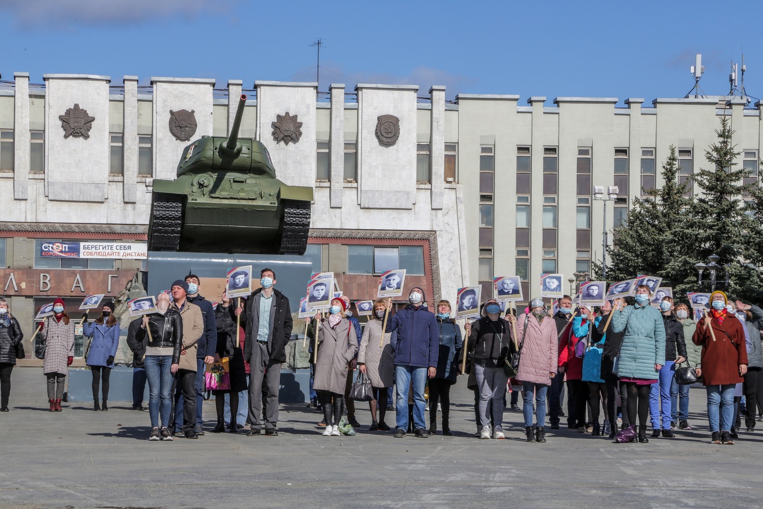 На площади возле главной проходной Уралвагонзавода, где свое почетное место занимает символ Великой Победы танк Т-34-85, заводчане составили слова «Вечная слава». В акции приняли участие профактив и члены молодежной организации УВЗ, работники «Уралкриомаша», УКБТМ и УКБВ (в составе Концерна УВЗ входят в Госкорпорацию Ростех). Большая часть держали в руках портреты тружеников тыла, которые в годы войны ковали Победу на Уральском танковом заводе №183 (ныне Уралвагонзавод). Их имена внесены в заводскую Книгу Почета, которая хранится в Выставочном комплексе Уралвагонзавода.