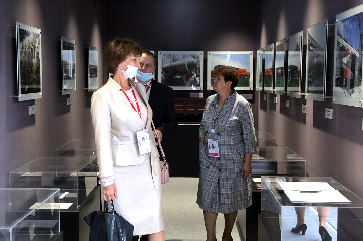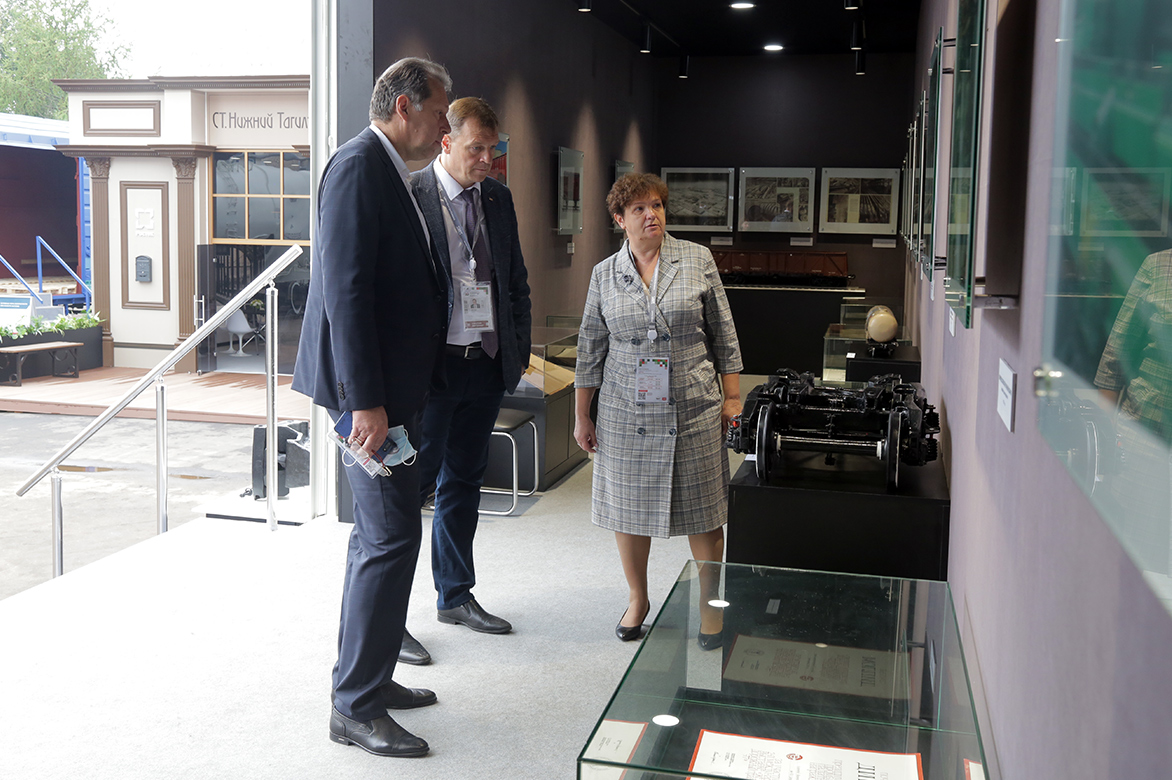 Выставка разместилась в новом крытом вагоне Уралвагонзавода. Увеличенный объем кузова позволил расположить внутри 49 экспонатов из фондов Выставочного комплекса УВЗ и в полной мере отразить огромный вклад предприятия в российское вагоностроение. В экспозиции представлены модели железнодорожной продукции прошлых лет, архивные документы и редкие фотографии, сертификаты и знаки качества Уралвагонзавода. Для гостей выставки работают экскурсоводы.