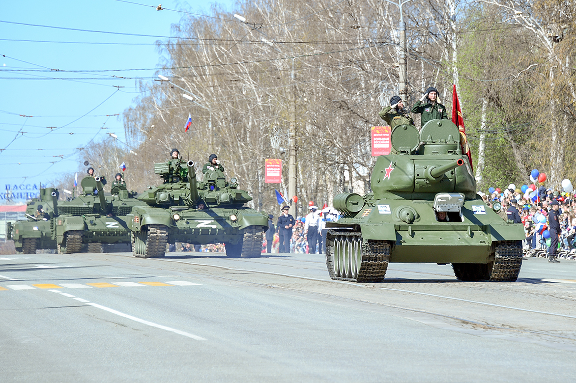 Открыл Парад Победы легендарный танк Т-34-85. Эта машина отражает огромный вклад предприятий Нижнего Тагила в Великую Победу. С 1941 по 1945 год на УТЗ было выпущено 25 914 «тридцатьчетверок». Каждый второй танк, воевавший на фронтах ВОВ, сошел с конвейера нижнетагильского предприятия. Т-34-85 признан лучшим танком Второй мировой войны.