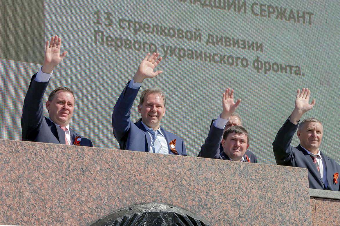 После участия в акции генеральный директор УВЗ поднялся на трибуну и приветствовал всех участников праздничного шествия.