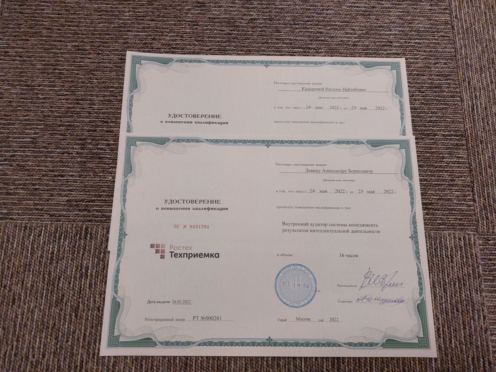 Специалисты УВЗ первыми в Ростехе получили удостоверения внутренних аудиторов системы менеджмента РИДМосква, 15 июня 2022 года