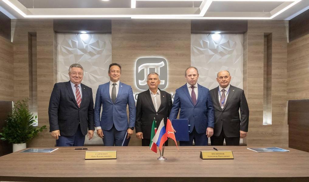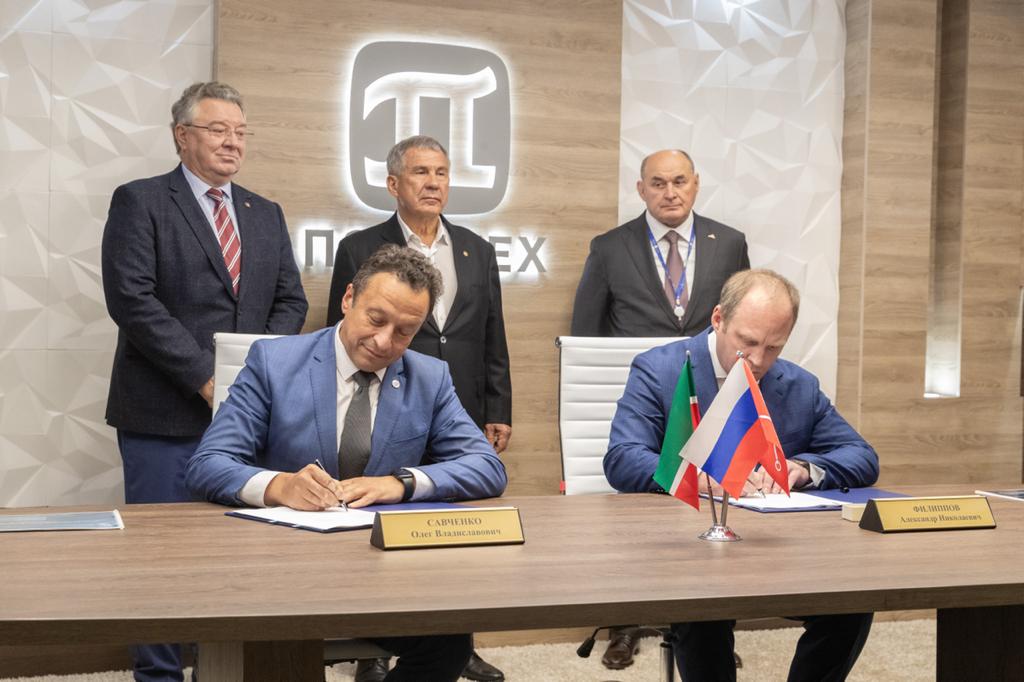 На стенде СПбПУ в рамках Форума подписано знаковое соглашение о сотрудничестве. Генеральный директор АО «Зеленодольский завод имени А.М. Горького» Александр Филиппов и генеральный директор ФГУП «Крыловский государственный научный центр» Олег Савченко подписали договор о строительстве первого в России инновационного судна с энергетической установкой на базе опытного образца универсального функционального модуля на водородных топливных элементах. Торжественная церемония подписания состоялась в присутствии президента Республики Татарстан Рустама Минниханова и ректора Санкт-Петербургского политехнического университета Петра Великого Андрея Рудского. В мероприятии также принял участие генеральный директор АО «Холдинговая компания «Ак Барс» Иван Егоров.