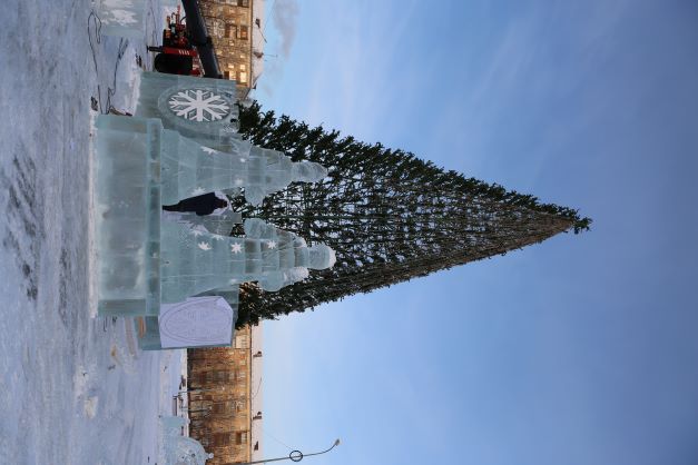 В детском парке заводского Дворца культуры сотрудники цеха ремонта технологического оборудования УВЗ установили 18-метровую ель. Она украшена гирляндами из 70 тысяч светодиодов. Технические возможности иллюминации позволяют транслировать графические элементы и дизайнерские решения – на ёлке можно увидеть логотипы Уралвагонзавода, поздравительные слова и добрые пожелания. Рядом с зеленой красавицей расположены фигуры Деда Мороза и Снегурочки. В этом году тема ледового городка «Уральские промыслы». Сейчас самое время вернуться к корням, ближе познакомиться с народными традициями. 70 кубометров прозрачного льда привезены с Тагильского пруда.