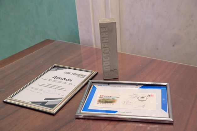 В рамках торжественной церемонии на почтовый конверт с изображением танка Т-14 на платформе «Армата», выпущенного Почтой России к 85-летию Уралвагонзавода, поставили оттиск памятного штемпеля «Достояние Среднего Урала». Штемпель был разработан специально для конкурса. На нём – горы Среднего Урала и надпись: «Достояние Среднего Урала», а также индекс центрального почтового отделения Екатеринбурга «620000».