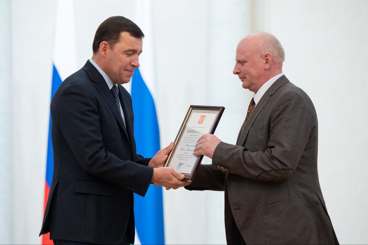 Губернатор Свердловской области лично вручил Благодарность Президента Российской Федерации формовщику ручной формовки АО «КУЛЗ» Мельникову Сергею Кузьмичу за вклад в разработку и создание новой специальной техники, укрепление обороноспособности страны и многолетнюю добросовестную работу.
