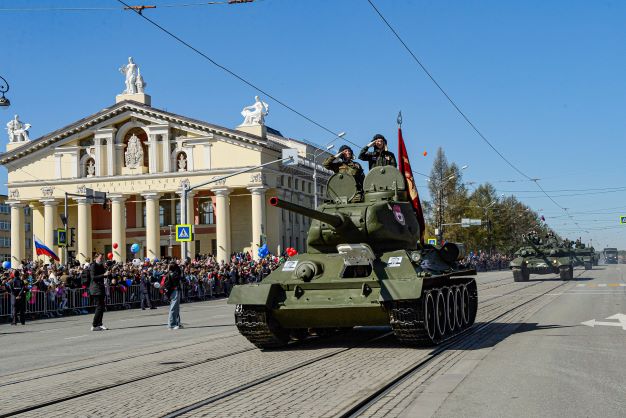 В Нижнем Тагиле в городском параде Победы примет участие танк Т-34-85 Уралвагонзавода. Танк Т-34-85 сошел с конвейера Уральского танкового завода №183 (сейчас Уралвагонзавод) в 1945 году. Он не успел принять участие в боевых действиях, а остался на предприятии в память о трудовом подвиге заводчан в годы Великой Отечественной войны и стоит в музее бронетанковой техники УВЗ.