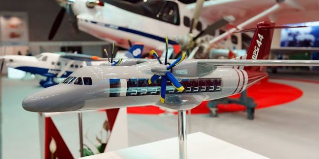 Модель перспективного пассажирского турбовинтового регионального самолёта ТВРС-44 "Ладога", создаваемого АО "Уральский завод гражданской авиации" (с) АО "Уральский завод гражданской авиации"