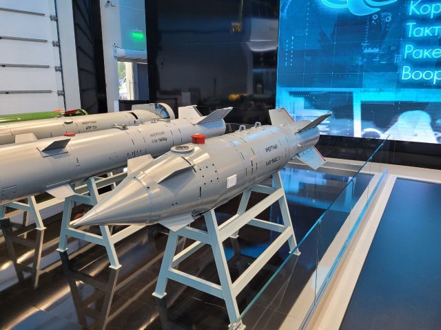 Линейка авиационных средств поражения в экспозиции демоцентра включает противокорабельные ракеты Х-31АД и Х-35УЭ, ракета класса "воздух-поверхность" Х-59МК. Этот ряд продолжают новинки прошлого года: ракета Х-59МК модернизированная с боевой частью двойного действия, межвидовая многоцелевая самонаводящаяся ракета малой дальности модульного построения типа Х-МД-Э и многофункциональная малозаметная высокоточная ракета Х-69.