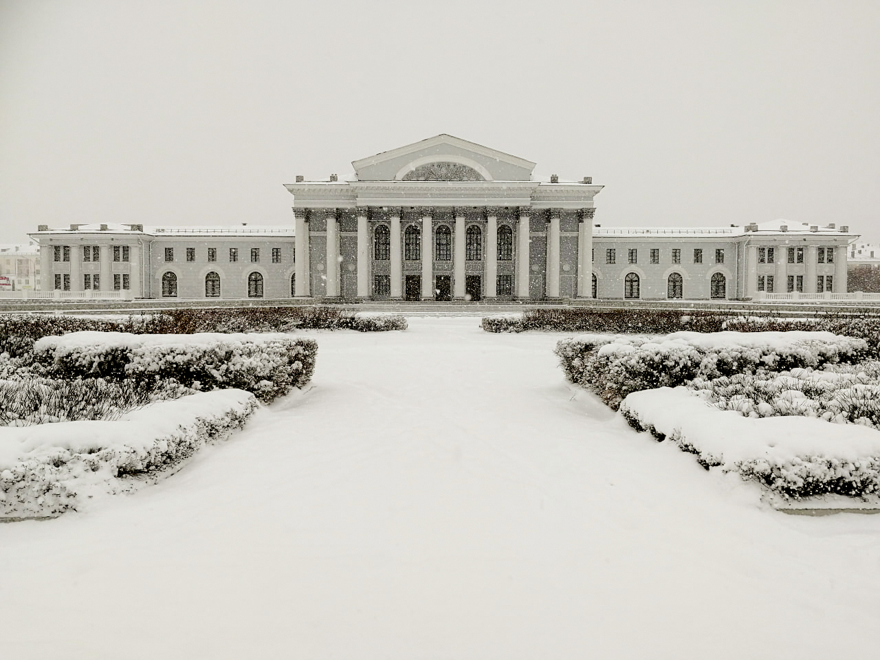 В левом крыле – малый зрительный зал на 160 мест и танцевальный зал, в правом – спортивный зал, репетиционные комнаты. В 1958 году вокруг Дворца был разбит парк.