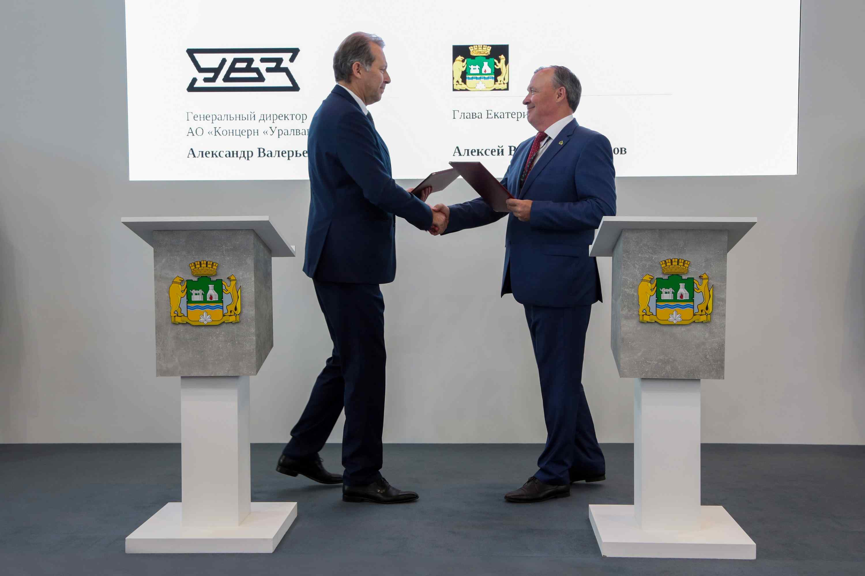 Также было подписано соглашение о сотрудничестве между администрацией города Екатеринбург и АО «Концерн «Уралвагонзавод», направленное на создание условий для развития в Екатеринбурге электрического автомобильного транспорта и его компонентов. Подписи под документом поставили глава УВЗ Александр Потапов и мэр уральской столицы Алексей Орлов.