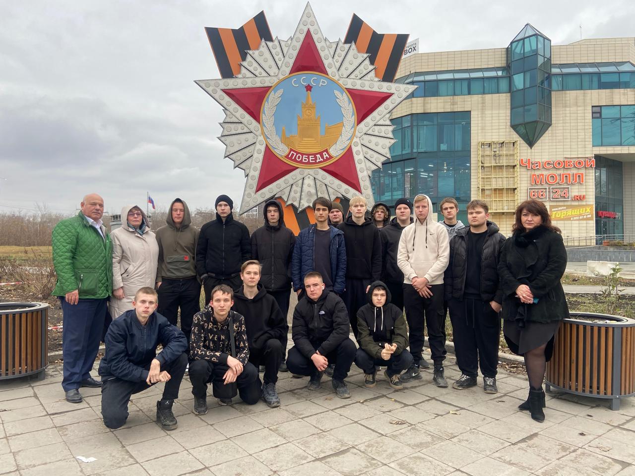 Экскурсия для гостей завершилась посещением стелы "Орден Победы" и общей фотографией на память. Далее студенты на комфортабельном автобусе (заказанном РЦЛТ) отбыли в г. Каменск-Уральский. В организации поезди и встрече со студентами принял участие генеральный директор Ассоциации УралЛИТЦ профессор Е.М. Дорожкин