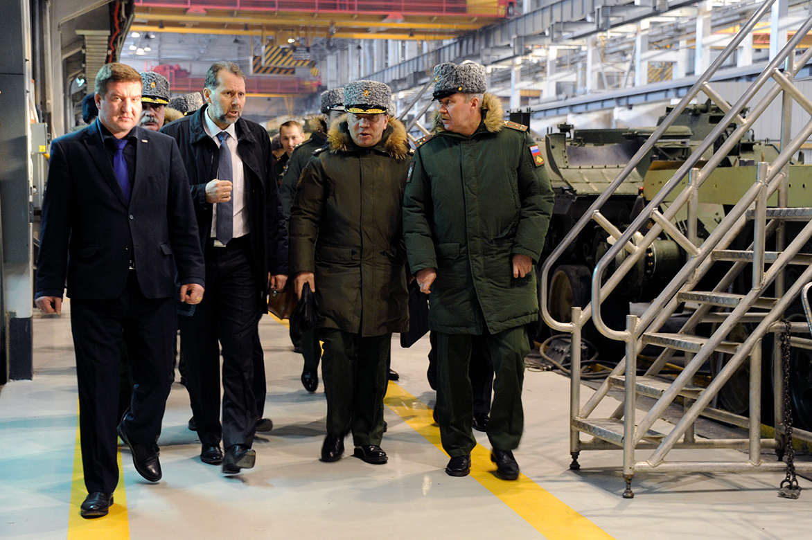 В сопровождении генерального директора Корпорации УВЗ Александра Потапова заместитель министра побывал на испытательном полигоне «Старатель» и в сборочном цехе Уралвагонзавода, где создаются передовые боевые машины для Российской Армии, в том числе танки Т-14 «Армата» и БМПТ «Терминатор». Цель визита - проверить, как выполняются Гособоронзаказ и работы по перспективным видам техники.