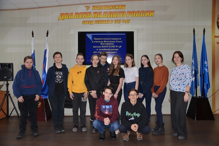 7 февраля в АО «Уралтрансмаш» (входит в СоюзМаш России) побывали учащиеся школы №138. Восьмиклассники познакомились с историей завода и выпускаемой продукцией.