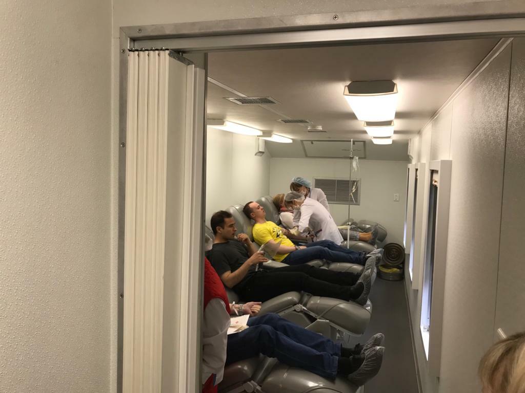 В мобильном пункте Свердловской областной станции переливания крови выездная бригада медиков приняла 54 сотрудника предприятия.